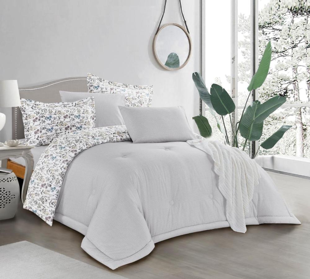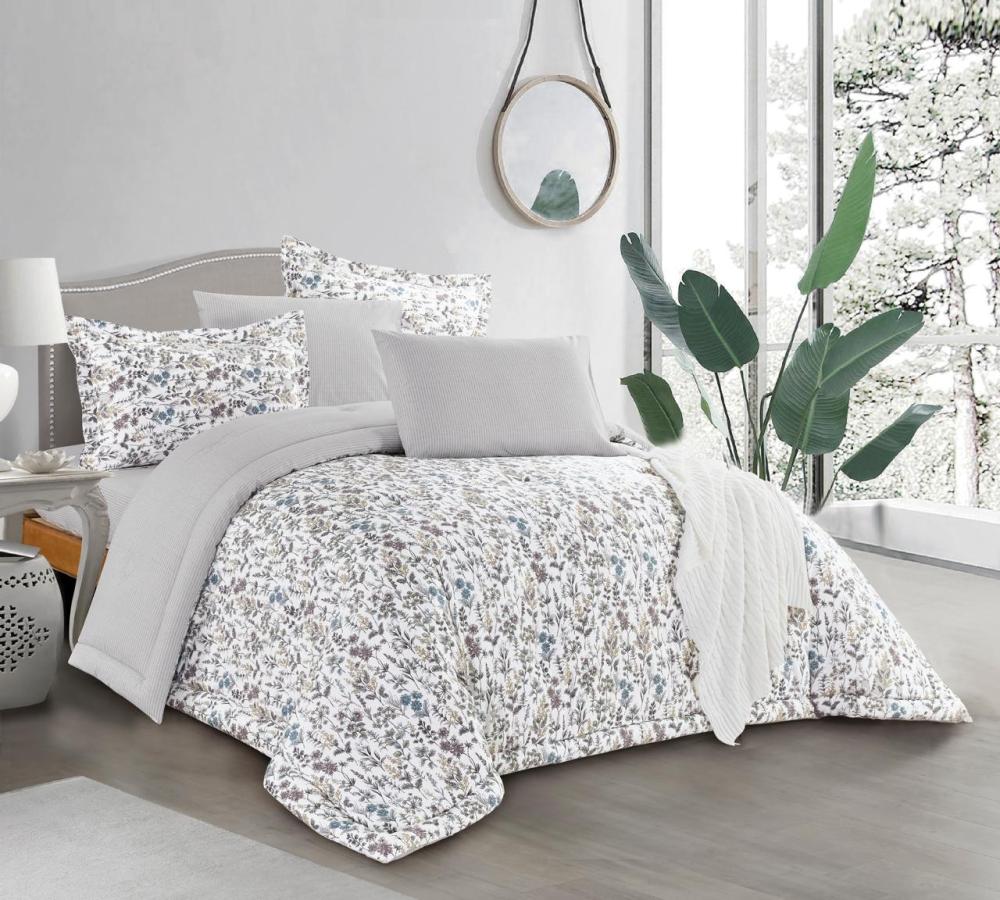 طقم مفرش سرير قطن مدريد يجمع لك بين الفخامة وجمال التصميم، اضافة رائعة لمفروشات غرفة نومك، بحشوة ثابته غير قابلة للنزع، بقماش قطني طبيعي أملس، مزدوج مكون من 6 قطع من برومسد هوم